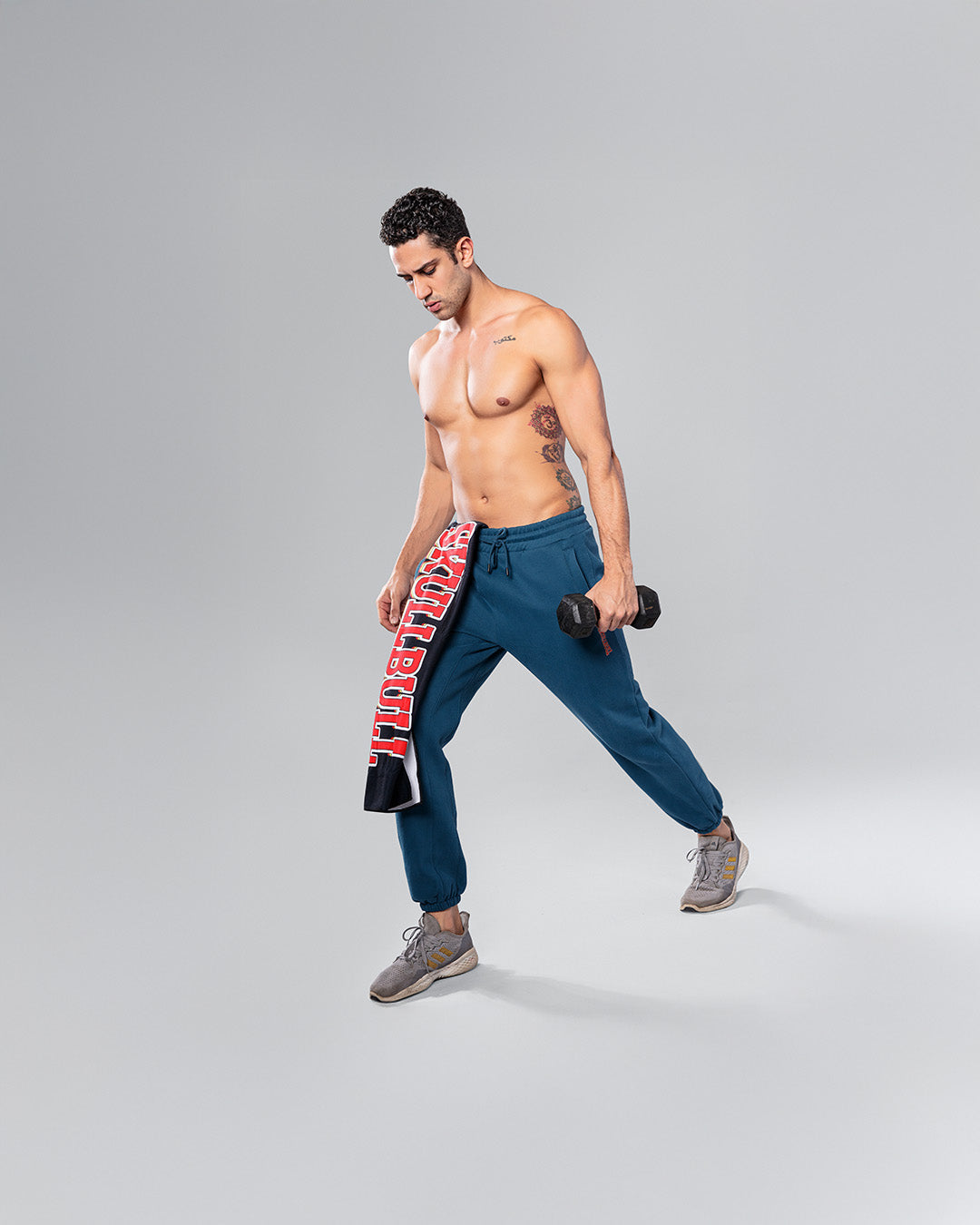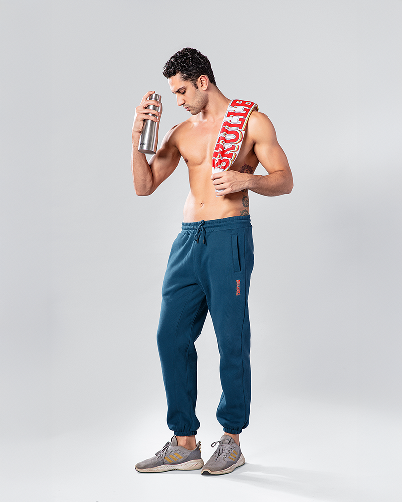 Skullbull Fleece Sweatpants – Cotton Blend Joggers with Adjustable Waistband (Blue)